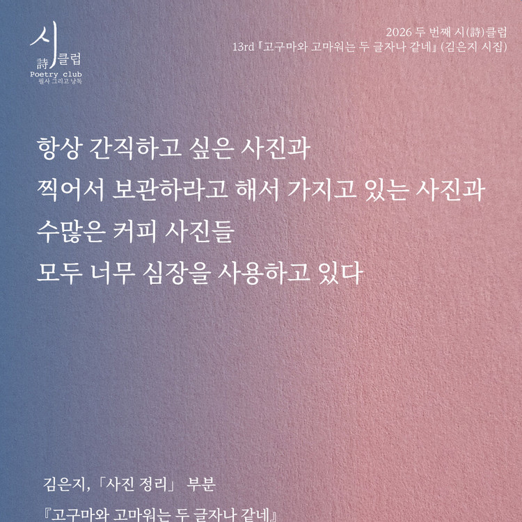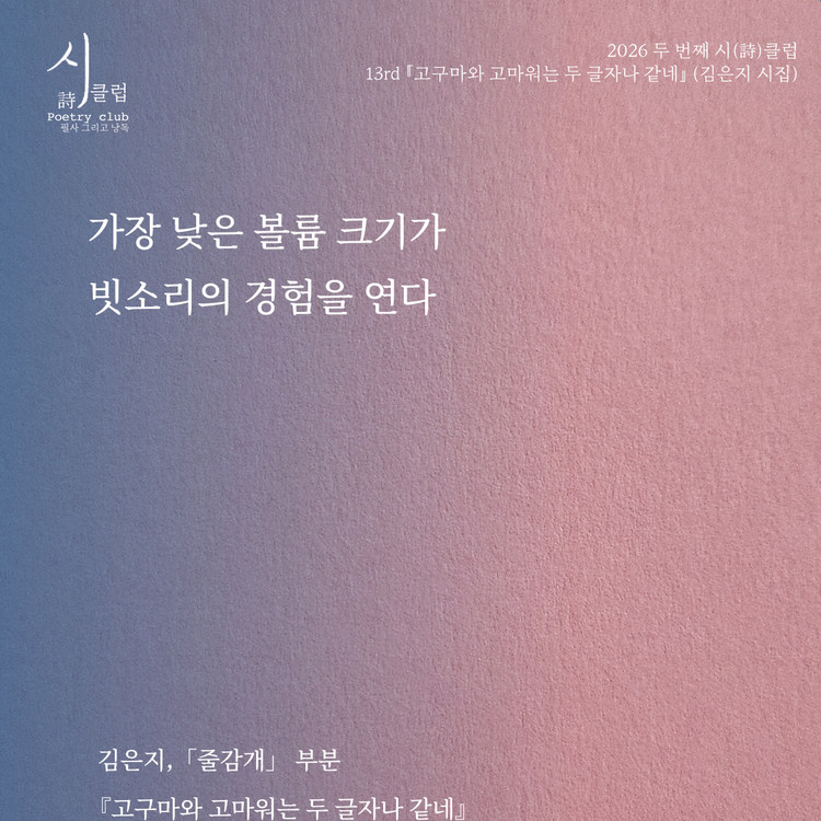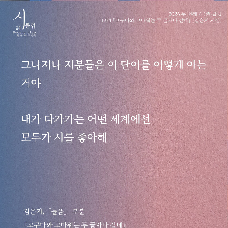 매월 한 권의 시집을 곱씹어 함께 읽는 [시(詩) 클럽] 입니다.
