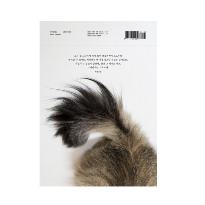 누구에겐 영감이 되기도 하고 지혜를 배우는 스승이자 직업, 가족인 사람들. 이번 《베어》에서는 예술, 종교 등 다양한 사람들의 틈을 살금살금 엿보았습니다. 전남 순천 서쪽 기슭에 자리한 절에서 스님을 쫓아다니는 고양이, 안테나 소속 뮤지션 권진아, 고양이로 캔버스를 채운 화가와 일러스트레이터의 작업실을 둘러보았습니다. 고양이로만 채운 서점, 마음을 담아 만든 고양이용품, 반려동물의 이별과 사회적 문제까지 깊숙한 시선도 놓치지 않았습니다. 다양한 집사들만큼 다채로운 관계 속에서 사는 고양이가 전하는 이야기를 만날 수 있습니다.