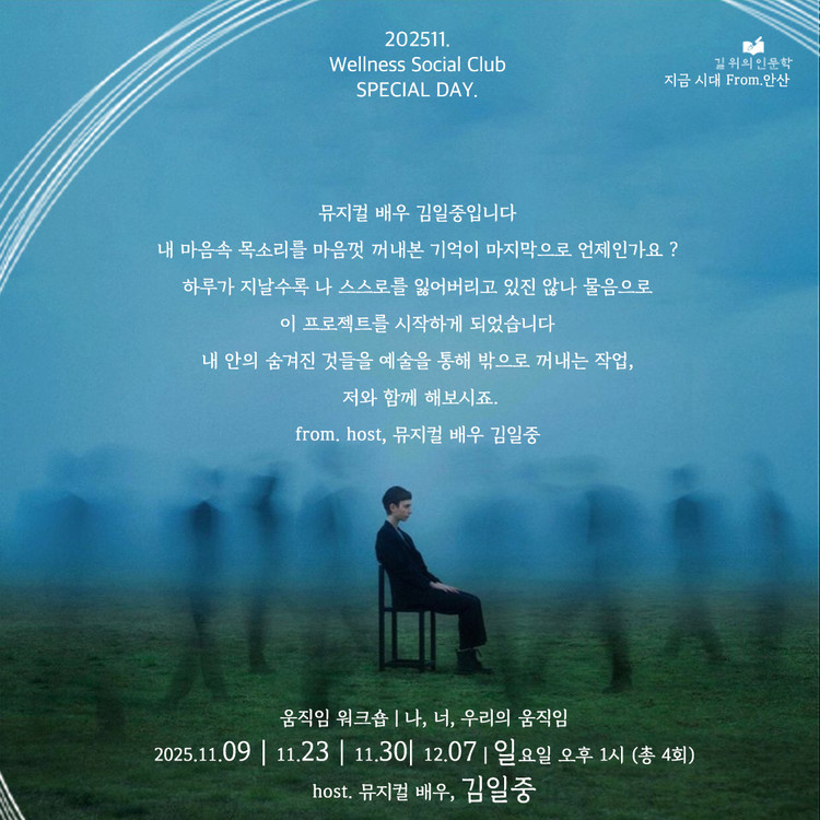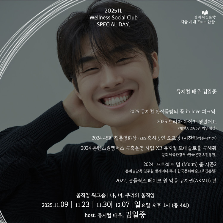 * 11월 9일(일)부터 시작하지만 11월 16일(일)은 김일중 배우의 공연일정이 있어 한 주 건너 총 4회의 자리를 마련합니다.