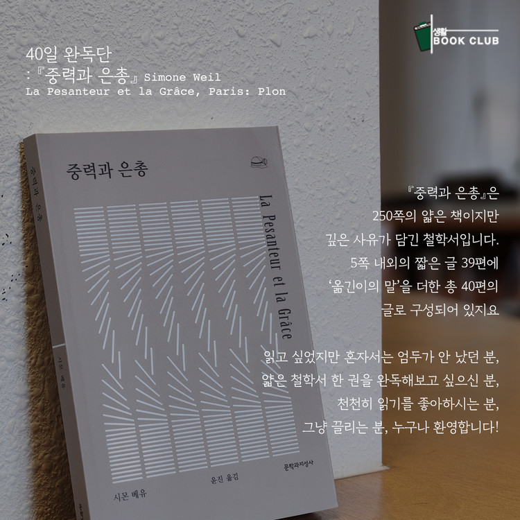 『중력과 은총』 ’40일 완독단’에 어서 오세요!!