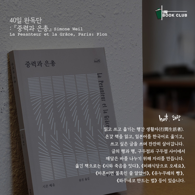 40일 완독단 : 『중력과 은총』 시몬 베유