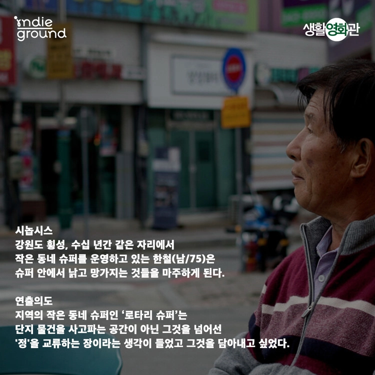 영화는 강원도 횡성에서 수십 년째 작은 동네 슈퍼를 운영해온 ‘한철’의 이야기를 따라갑니다. 낡고 망가져가는 물건들 사이에서, 그는 자신의 삶을 조용히 되돌아보게 됩니다.