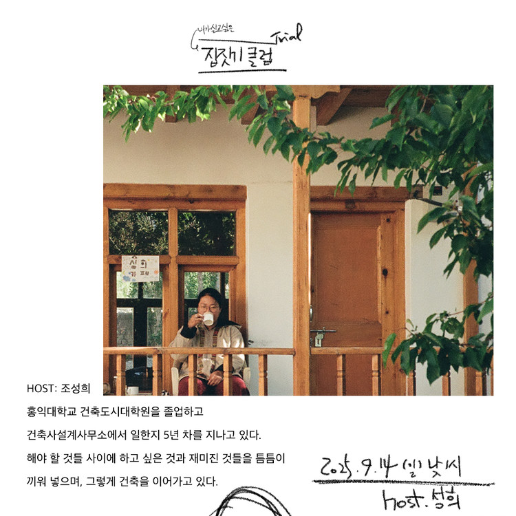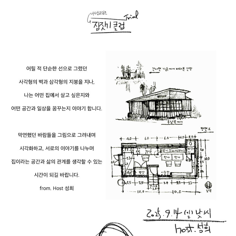 생각해보지 않았던 구체적인 집을 짓는다는 것의 방향을 Host. 성희님이 잘 가이드해드릴 거예요.