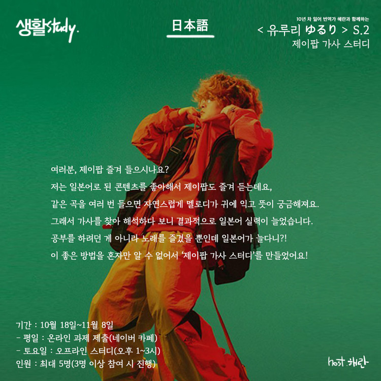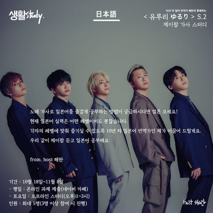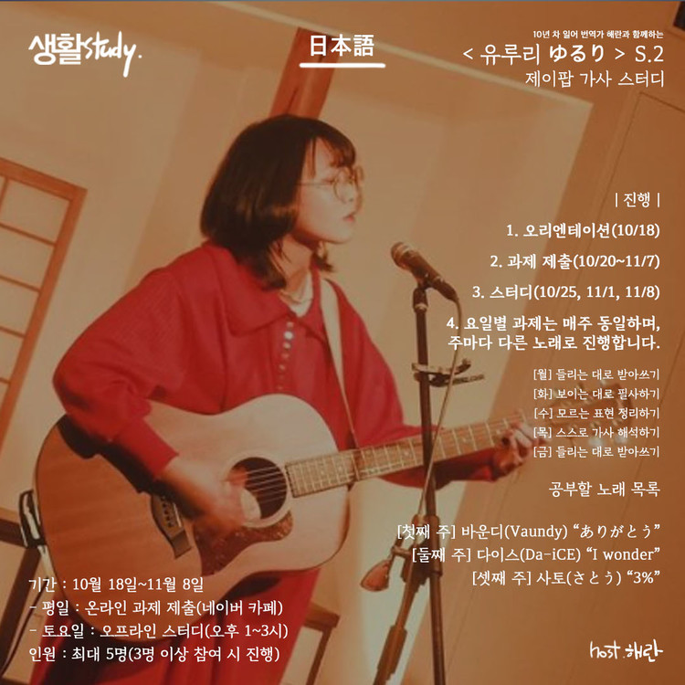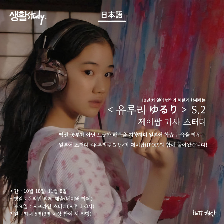 일본어 클럽 <유루리> 시즌2. 제이팝 가사 스터디 1기 멤버 모집!!!