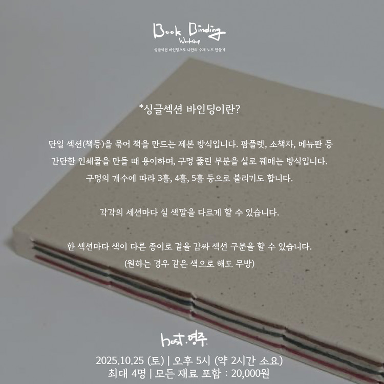 이번 워크숍부터는 싱글섹션 바인딩으로 북바인딩 워크숍을 진행합니다.